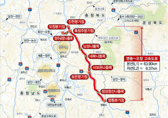 ¿µµ¿~¿Àâ °í¼Óµµ·Î´Â ¿µµ¿±º ¿ë»ê¸éºÎÅÍ Ã»Áֽà ¿ÀâÀ¾±îÁö ÃÑ ¿¬Àå 70.27km, ¿Õº¹ 4Â÷·Î ±Ô¸ð·Î °Ç¼³µÉ ¿¹Á¤ÀÌ´Ù.