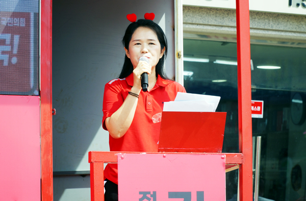 À¯¼¼ÀåÀ» °¡µæ ¸Þ¿î ÁöÁöÀÚµéÀº À±´ë¼º ÀÇÀåÀÇ ±¸È£¿¡ µû¶ó '±è¹®¼ö! ±è¹®¼ö!"¸¦ ¿¬È£Çϸç È£ÀÀÇß°í, ¿¬´Ü¿¡ ¿À¸¥ ÀλçµéÀº ÇѸñ¼Ò¸®·Î "º¸ÀºÀÌ Á¤Á÷ÇÑ ÁöµµÀÚ¸¦ ´ç¼±½ÃÄÑ¾ß ÇÑ´Ù"°í ¸ñ¼Ò¸®¸¦ ³ô¿´´Ù.