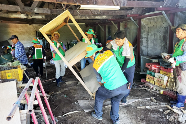 ´Ü¿øµéÀº ħ¼öµÈ ÁÖÅÃÀÇ ³»¿ÜºÎ û¼Ò¿Í Åä»ç Á¦°Å, °¡ÀüÁ¦Ç° Á¤¸® µîÀ» µµ¿ì¸ç ÀÌÀç¹ÎµéÀÇ ºü¸¥ ÀÏ»ó ȸº¹À» À§ÇØ ±¸½½¶¡À» Èê·È´Ù.