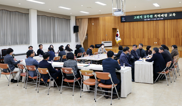 À̹ø ±³À°Àº '°íÀ§Á÷ ´ë»ó º°µµ 4´ë Æø·Â¿¹¹æ ±³À° Àǹ«È­'¿¡ µû¶ó ¾ç¼ºÆòµî ÀǽÄÀ» Á¦°íÇÏ°í °ÇÀüÇÑ °øÁ÷¹®È­¸¦ Á¶¼ºÇϱâ À§ÇØ ¸¶·ÃµÈ °ÍÀ¸·Î, Çѱ¹¼­ºñ½º±³À°¿ø ±èÃá¾Ö ¿øÀåÀ» ÃʺùÇØ ¡â°ü¸®ÀÚÀÇ Ã¥ÀÓ°ú Àǹ« ¡â¼ºÀÎÁö ±â¹ÝÀÇ Æø·Â ¿¹¹æ ÀÎ½Ä °­È­ ¡â¼ºÆòµîÇÑ Á¶Á÷¹®È­ Á¶¼º Àü·« µîÀ» Áß½ÉÀ¸·Î 4½Ã°£ µ¿¾È ÁøÇàµÆ´Ù.