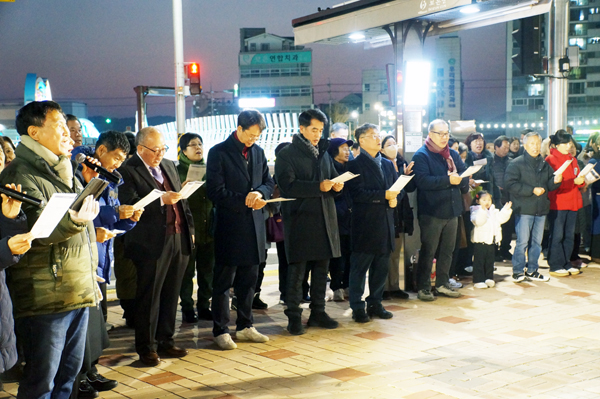 À̾î "¼ºÅºÆ®¸®ÀÇ ºÒºûÀÌ À̰÷À» Áö³ª´Â ¸ðµç À̵鿡°Ô Èñ¸ÁÀÇ µîºÒÀÌ µÇ°í, ÁÖº¯ÀÇ ¾îµÓ°í ¼Ò¿ÜµÈ °÷°÷¿¡ ¿ÂÁ¤ÀÇ ºûÀÌ µÇ±æ ¹Ù¶õ´Ù"¸ç "´Ù°¡¿Â »õÇØ´Â ¸ðµç ±º¹Îµé¿¡°Ô Èû°ú ¿ë±â¸¦ ºÏµ¸¾ÆÁÖ´Â ÇÑÇØ°¡ µÇ±â¸¦ Èñ¸ÁÇÑ´Ù"°í µ¡ºÙ¿´´Ù.