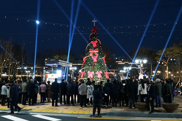 À̹ø ¹îµé°ø¿ø¿¡ ¼³Ä¡µÈ Å©¸®½º¸¶½ºÆ®¸®´Â ¿¹³â°ú °°Àº ±Ô¸ð(³ôÀÌ 8m, Æø 4m)ÀÇ ´ëÇü Æ®¸®·Î, º° ¸ð¾ç Àå½Ä°ú ºûÀÌ ¾î¿ì·¯Á® ¼ºÅºÀýÀ» ¾ÕµÎ°í ±º¹Îµé¿¡°Ô µû¶æÇÑ À§·Î¿Í ÇູÇÑ ¿¬¸»À» ±â¿øÇÏ´Â ¼Ò¸ÁÀ» ´ã¾Ò´Ù.