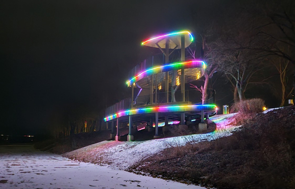 ¾îµÒÀÌ Â£°Ô ±ò¸° õº¯À» µû¶ó °È´Ù º¸¸é, ¿¹Àü¿¡ ¾ø´ø ÇüÇü»ö»öÀÇ LED Á¶¸íÀÌ È­·ÁÇÏ°Ô ÈÖ°¨±ä ½Ã¼³¹°ÀÌ ´«±æÀ» »ç·ÎÀâ´Â´Ù.