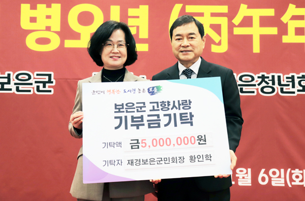 Ȳ ȸÀåÀº 6ÀÏ º¸ÀºÀ¾ ±×·£µåÄÁº¥¼Ç¿¡¼ ¿¸° 'º¸ÀºÃ»³âȸÀÇ¼Ò ½Å³âÀλçȸ'¿¡¼ °íÇâ»ç¶û±âºÎ±Ý 500¸¸ ¿øÀ» ±âŹÇß´Ù.