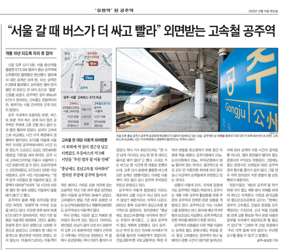 Áö³­ ¿¬¸» Á¶¼±ÀϺ¸(12¿ù 16ÀÏÀÚ 2¸é)¿¡ º¸µµµÈ KTX °øÁÖ¿ªÀÇ »ç·Ê´Â ¿ì¸®¿¡°Ô ½Ã»çÇÏ´Â ¹Ù°¡ Å©´Ù.