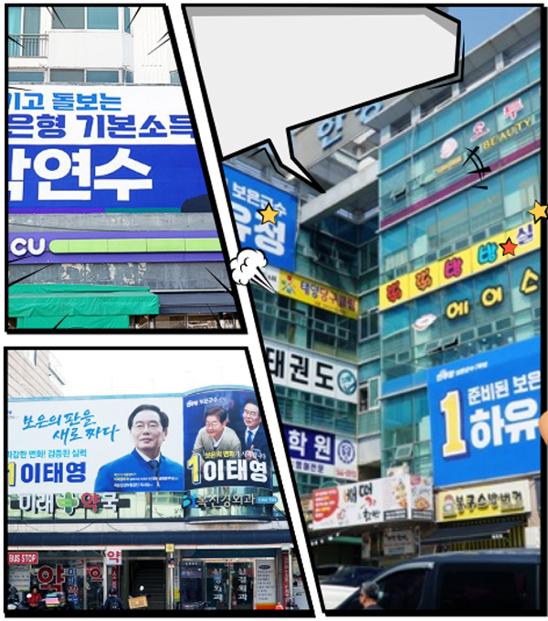 6¡¤3 Àü±¹µ¿½ÃÁö¹æ¼±°Å¸¦ ¾ÕµÎ°í º¸ÀºÀ¾³» ÀÏ¿ø °÷°÷¿¡ ¿¹ºñÈĺ¸ÀÚµéÀÇ È«º¸ Çö¼ö¸·ÀÌ ÀÕµû¶ó ³»°É¸®°í ÀÖ´Ù.