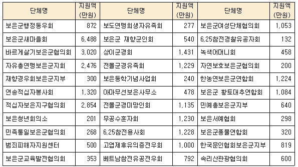 º¸Àº±º, »çȸ´Üüº¸Á¶±Ý 3¾ï5õ¸¸¿ø Áö¿ø ¿ÃÇØ 33°³ ´Üü¿¡ º¸Á¶±Ý Áö¿ø È®Á¤