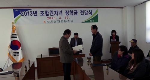 º¸Àº³óÇù(Á¶ÇÕÀå. °û´öÀÏ) 27ÀÏ ¿ÀÀü º¸ÀºÀ¾ ¼ºÁÖ¸® ³óÇùº»Á¡È¸Àǽǿ¡¼ Á¶ÇÕ°ü°èÀÚ¿Í Çкθð µîÀÌ Âü¼®ÇÑ °¡¿îµ¥ Á¶ÇÕ¿ø ÀÚ³à ÀåÇÐ±Ý Àü´Þ½ÄÀ» °¡Á³´Ù.