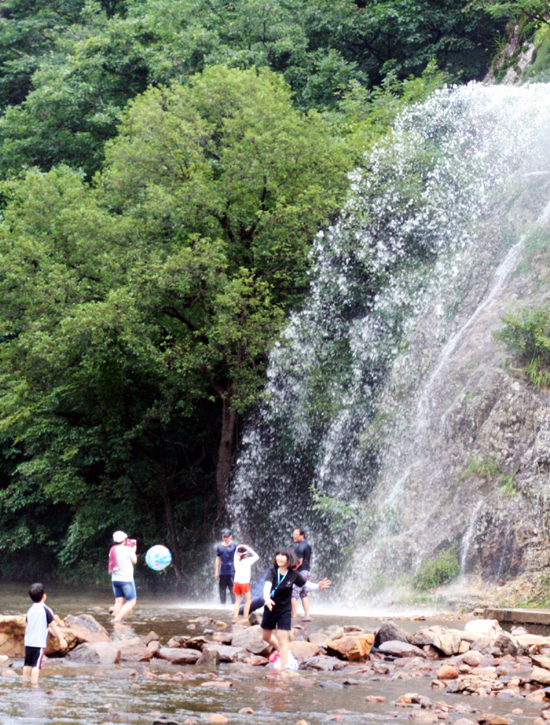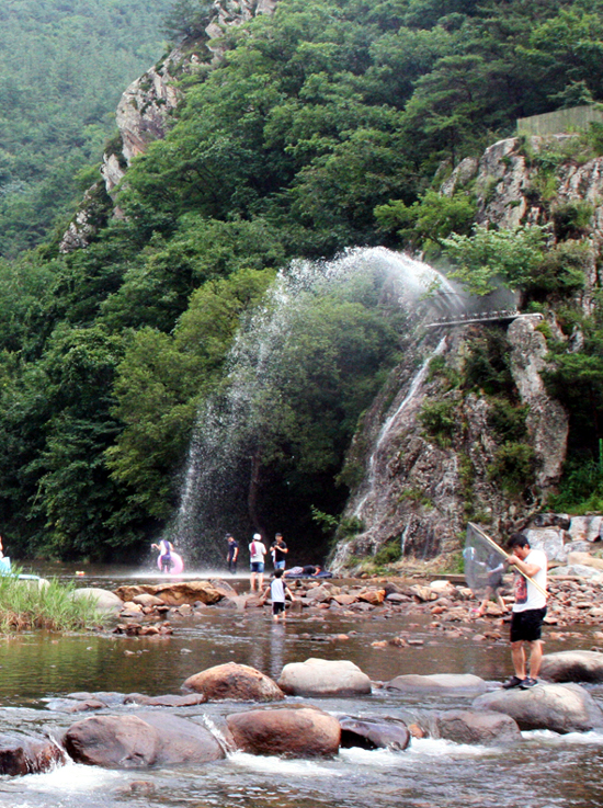 ´õ¿íÀÌ ÀΰøÆøÆ÷°¡ ¼³Ä¡µÈ Àαٿ¡´Â »ï°¡Ãµ¿¡¼ È帣´Â ½Ã¿øÇÑ °è°îÀÌ ÆîÃÄÁ® ÀÖ¾î ¹°³îÀÌÀåÀ¸·Î °¢±¤¹Þ°í ÀÖ´Ù.