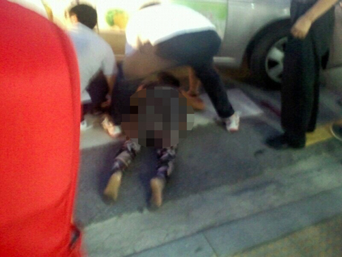 »ç°í°¡ ³ªÀÚ À̰÷À» Áö³ª´ø °íµîÇлýµé°ú ÇàÀεéÀÌ ´Þ·Áµé¾î Â÷·® ¹Ø¿¡ ±ò·Á ÀÖ´ø ¹Ú¾¾¸¦ Â÷·®¹ÛÀ¸·Î ±¸Á¶Çس´Ù.