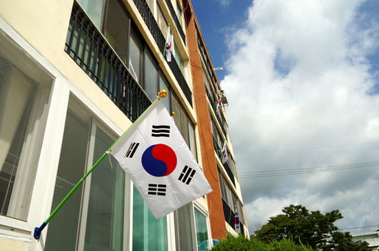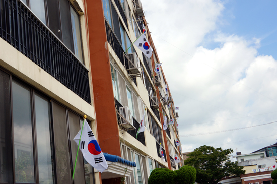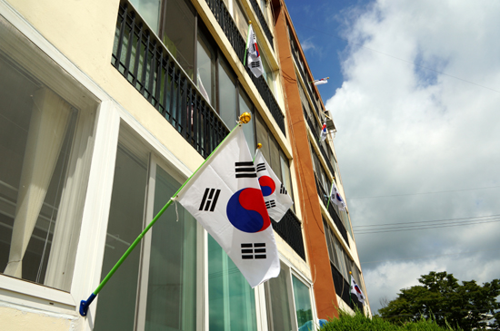 ¹ÝÀåÀ» ¸Â°í ÀÖ´Â ±è¼º¼ö(67)¾¾´Â "±¹±â¿¡ ´ëÇÑ Á¸¾ö¼ºÀ» °¡Á³À¸¸é ÁÁ°Ú´Ù´Â ¸¶À½¿¡¼ ½ÃÀÛÇÑ ÀÏÀε¥, ÀÌÁ¦´Â ±¹°æÀϸ¸ µÇ¸é ¾ÆÆÄÆ® ÁֹεéÀÌ ½º½º·Î ³ª¼ űر⠴ޱ⠿¿¡ Àû±Ø Âü¿©ÇØ ÁÖ°í ÀÖ¾î °¨»çÇÒ »Ó"À̶ó°í ¸»Çß´Ù.