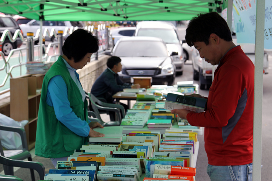 ÀÌ¿¡ µû¶ó '¾Ë¶ãµµ¼ ±³È¯½ÃÀå'¿¡¼´Â ±º¹ÎµéÀÌ ÀÐ°í ³ ´ÙÀ½ Áý¿¡¼ º¸°üÇϰí Àִ åÀ» °¡Áö°í ³ª¿À¸é ¾Ë¶ã½ÃÀå¿¡ ºñÄ¡µÈ µµ¼ Áß¿¡¼ ¿øÇÏ´Â »õ Ã¥À¸·Î ±³È¯ÇØÁÖ°í ÀÖ´Ù.