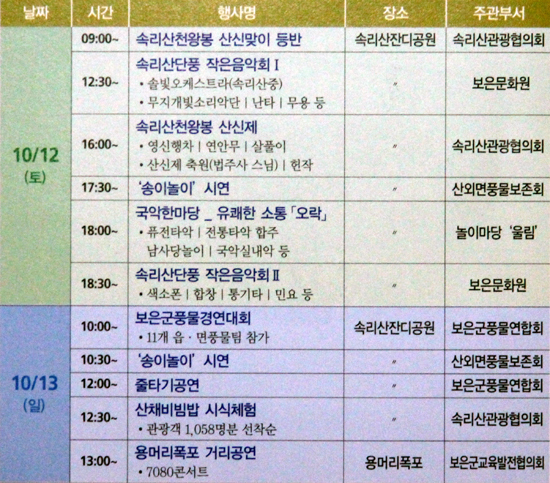 ù° ³¯ÀÎ 12ÀÏ¿¡´Â ¼Ó¸®»ê°ü±¤ÇùÀÇȸ°¡ ÁÖ°üÇϴ õ¿ÕºÀ¿¡ »ê½ÅÁ¦¿Í ´õºÒ¾î º¸Àº´ëÃß°ñ»ö¼ÒÆù µ¿È£È¸, °³³ª¸®ÇÕâ´Ü, ¼Ò¸®»ç¶û, ¶¥¿ï¸² ¹Î¿äÆÀ µîÀÌ Ã⿬ÇÏ´Â ¼Ó¸®»ê´Üdz ÀÛÀºÀ½¾Çȸ°¡ ¿­¸°´Ù.
