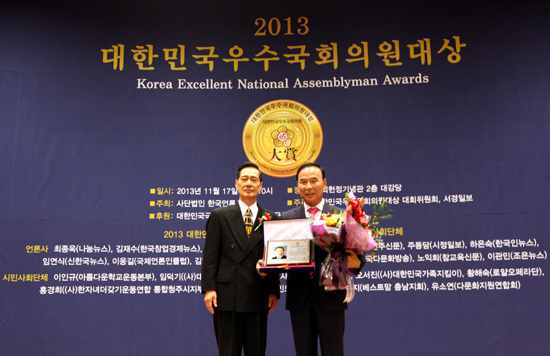 »õ´©¸®´ç ¹Ú´öÈì ±¹È¸ÀÇ¿øÀÌ Áö³­ 17ÀÏ '2013 ´ëÇѹα¹ ¿ì¼ö±¹È¸ÀÇ¿ø ´ë»ó'À» ¼ö»óÇß´Ù.