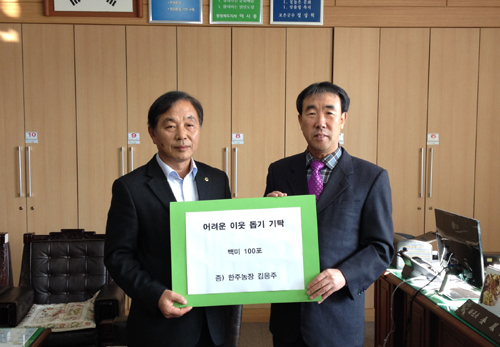 º¸ÀºÀ¾ °½Å¸®¿¡¼ ÇÑÁÖ³óÀåÀ» ¿î¿µÇϰí ÀÖ´Â ±èÀÀÁÖ(52) ¾¾´Â Áö³ 18ÀÏ º¸ÀºÀ¾»ç¹«¼Ò(À¾Àå Á¶Ç×½Å)¸¦ ¹æ¹®ÇÏ¿© À¾³» ¾î·Á¿î ÀÌ¿ô¿¡°Ô Àü´ÞÇØ ´Þ¶ó¸ç ģȯ°æ½Ò 100Æ÷(250¸¸¿ø »ó´ç)¸¦ ±âŹÇß´Ù.