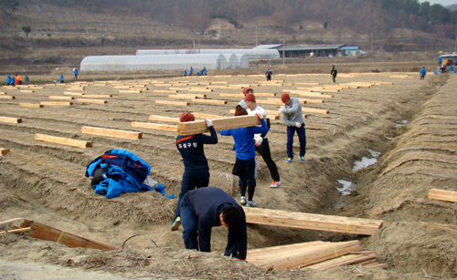 ±Ø±âÈÆ·Ã¿¡ ¾Õ¼­ À̵éÀº źºÎ¸é º®Áö¸® ¾çõ±â¾¾ ³ó°¡¸¦ ã¾Æ Àλï¹ç ÁöÁÖ¸ñÀ» ¼³Ä¡ÇÏ´Â µî ºÀ»çȰµ¿À» ÆîÃÆ´Ù.