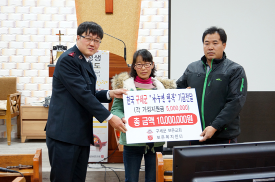 ±¸¼¼±º º¸Àº±³È¸ '³ª´©¸é Çູ±â±Ý' Àü´Þ »óÇöÀÌ³× °¡Á·°ú ÁØÈñ³× °¡Á·¿¡°Ô °¢°¢ 500¸¸ ¿ø¾¿ Áö¿ø