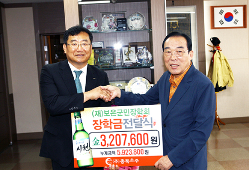 (ÁÖ)ÃæºÏ¼ÒÁÖ(´ëÇ¥ Á¶¼ºÈ£)´Â 12ÀÏ º¸ÀºÁö¿ª ÀÎÀçÀ°¼ºÀ» À§ÇÑ ÀåÇбâ±Ý 320¸¸7600¿øÀ» (Àç)º¸Àº±º¹ÎÀåÇÐȸ¿¡ ±âŹÇß´Ù. À̹ø ÀåÇбâ±ÝÀº Áö³­ÇØ 11¿ùºÎÅÍ ¿ÃÇØ 4¿ù±îÁö º¸ÀºÁö¿ª¿¡¼­ ÆÇ¸ÅµÈ ÃæºÏ¼ÒÁÖ Á¦Ç° 1º´´ç 5¿ø¾¿ Àû¸³ÇØ ¸¶·ÃÇß´Ù.