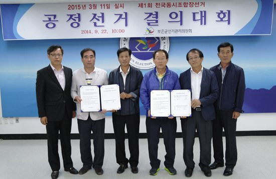 À̳¯ ¿¸° °øÁ¤¼±°Å°áÀÇ´ëȸ¿¡´Â º¸Àº³óÇù, ³²º¸Àº³óÇù, º¸ÀºÃàÇù, º¸Àº±º»ê¸²Á¶ÇÕ µî Áö¿ª³» 4°³ Á¶ÇÕÀÇ Á¶ÇÕÀå¼±°Å ÀÔÈĺ¸¿¹Á¤ÀÚ ¹× Á¶ÇÕ ÀÓ․Á÷¿ø µîÀÌ Âü¼®Çß´Ù.