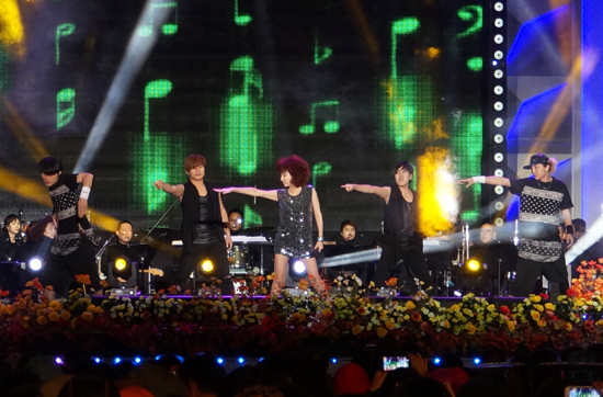 ÇÑÆí À̳¯ °¡¿äÁ¦¿¡¼´Â 2ºÎ ¼ø¼·Î ½ÃÅ©¸´, ³²Áø, ÄÉÀÌÀª, ±è¿Ï¼±, ÃÖ¿µÃ¶, ÀÌÀÚ¿¬ µî ÀαⰡ¼öµéÀÇ ÃàÇϰø¿¬ÀÌ ÆîÃÄÁ® °ü±¤°´°ú Áö¿ªÁֹΠµî 7000¿©¸íÀÇ °ü¶÷°´µéÀ» Áñ°Ì°Ô Çß´Ù.