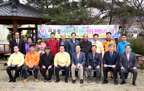 | | À̵¿ÇÊ ³ó¸²Ãà»ê½ÄǰºÎÀå°üÀÌ 14ÀÏ È¸ÀÎ¸é ºÐÀú½Ç ³óÃÌüÇèÈ޾縶À»À» ¹æ¹®ÇØ Áֹεé°ú ±â³äÃÔ¿µÀ» Çϰí ÀÖ´Â ¸ð½À |
