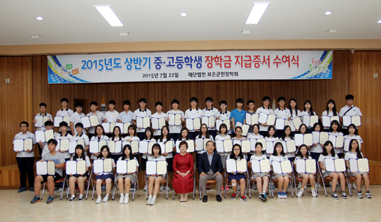 À̳¯ ÀåÇÐ±Ý ¼ö¿©½Ä¿¡¼­´Â Áö³­´Þ 27ÀÏ '2015³â »ó¹Ý±â Áß.°íµîÇлý ÀåÇлý ¼±¹ß°í»ç'¸¦ ÅëÇØ ¼±¹ßµÈ 57¸íÀÇ ÀåÇлý¿¡°Ô ÀåÇбÝÀÌ ÁÖ¾îÁ³´Ù.
