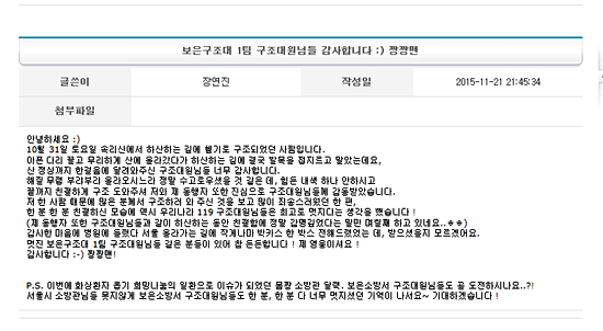 º¸Àº¼Ò¹æ¼, 119±¸Á¶´ë¿ø ±¸Á¶È°µ¿ °¨»ç±Û 'ÈÁ¦' ±¸Á¶ÀÇ ¼Õ±æÀ» ³»¹Ð¾îÁØ 119±¸Á¶´ë¿øµé¿¡°Ô °¨»çÇÕ´Ï´Ù