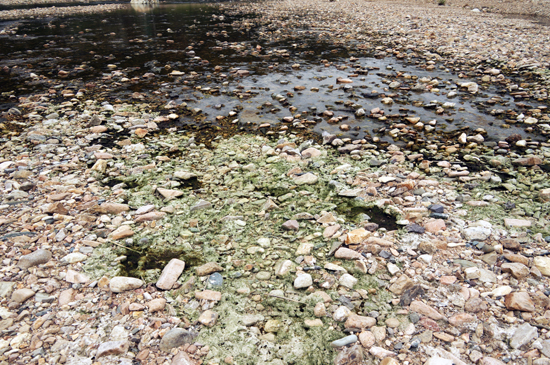 ¹«¾ùÀÌ µé¾îÀÖ´ÂÁö Á¤Ã¼¸¦ ¾Ë ¼ö ¾ø´Â ´õ·¯¿î Æó¼ö°¡ °è°î¹°°ú µÚ¼¯À̰í, ¹°À§¿¡ ³¤ Èò Â±â´Â ¾ï»õÇ®¿¡ ¾û°ÜºÙ¾î ¿À¿°ÀÌ ½É°¢ÇÏ°Ô ÁøÇàµÇ°í ÀÖÀ½À» º¸¿©ÁÖ°í ÀÖ´Ù.