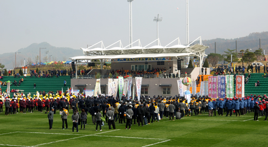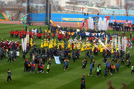 À̳¯ °¢ À¾¡¤¸éÀ» ´ëÇ¥ÇØ ³ª¿Â Âü°¡ÀÚµéÀÌ Èï°Ü¿î ³ë·¡ÀÚ¶û °æ¿¬À» ÆîÃÄ ±º¹Î ÃàÁ¦ÀÇ ÈïÀ» µ¸¿ü´Ù.