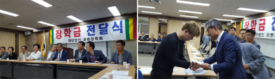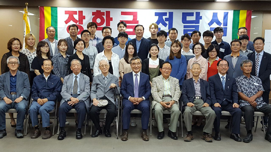 ÇÑÆí À̳¯ ÀåÇÐ±Ý ¼ö¿©½Ä¿¡¼ ±è»ó¹® ÀÌ»çÀåÀº 1000¸¸¿øÀÇ ÀåÇбÝÀ» º¸ÀºÀåÇÐȸ¿¡ ±âŹÇß´Ù.