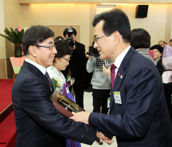 »ê¿Ü¸é Àå°©1¸® ÀÌÀåÀ» ¸Â°í ÀÖ´Â À¯Ã¶¿õ ¹Î°£´ÜüÃÑ¿¬ÇÕȸ ȸÀåÀÌ µµ¹Î´ë»ó ¼ö»óÁ÷ÈÄ °¡Á·µé°ú ±â³äÃÔ¿µÀ» Çϰí ÀÖ´Ù.
