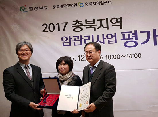 º¸Àº±ºÀÌ ÃæºÏµµ¿Í ÃæºÏÁö¿ª¾Ï¼¾ÅÍ¿¡¼­ ÁÖ°üÇÑ '2017³â ÃæÃ»ºÏµµ ¾Ï °ü¸®»ç¾÷ Æò°¡´ëȸ¡¯¿¡¼­ Àç°¡ ¾Ï ºÎºÐ ÃÖ¿ì¼ö±â°ü »óÀ» ¼ö»óÇß´Ù°í 11ÀÏ ¹àÇû´Ù.
