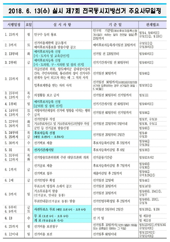 6¿ù 1ÀϱîÁö´Â ¼±°Å°øº¸ Á¦Ãâ ¹× ¼±°Åº®º¸ øºÎ¸¦ ÇÏ°í ¼±°ÅÀÏÀü 12ÀÏÀ» ¸Â¾Æ ¼±°ÅÀθíºÎ¸¦ È®Á¤ÇÑ´Ù.