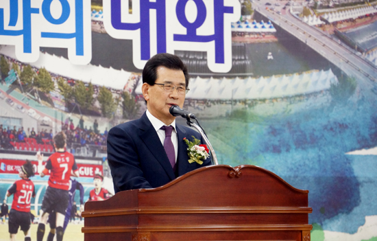 º¸Àº±ºÃ» ´ëȸÀǽǿ¡¼­ ¿­¸° µµ¹Î°úÀÇ ´ëÈ­¿¡¼­ À̽ÃÁ¾ ÃæºÏÁö»ç°¡ Àλ縻À» Çϰí ÀÖ´Ù.