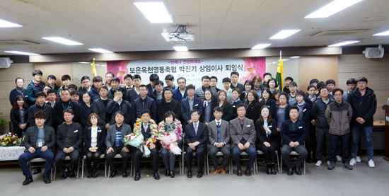ÇÑÆí, À̳¯ º¸Àº¿Áõ¿µµ¿ÃàÇù º»Á¡È¸Àǽǿ¡¼ ¿¸° ¹Ú »óÀÓÀÌ»çÀÇ ÅðÀӽĿ¡´Â ¸ÍÁÖÀÏ Á¶ÇÕÀåÀ» ºñ·ÔÇØ ÃàÇù ÀÓÁ÷¿ø°ú Á¶ÇÕ¿ø, °¡Á·, Ä£Áö µî 150¿©¸íÀÌ Âü¼®ÇØ ¸í¿¹·Î¿î ÅðÀÓÀ» ÃàÇÏÇß´Ù.