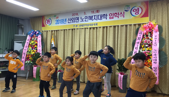 »ê¿ÜÃʵîÇб³(±³Àå À±µ¿¼±) ÇлýµéÀÌ 15ÀÏ »ê¿Ü¸é ³ëÀκ¹Áö´ëÇÐ ÀÔÇнĿ¡ ÃàÇÏ»çÀý´ÜÀ¸·Î Âü¼®ÇØ ÀÚ¸®¸¦ ºû³Â´Ù.