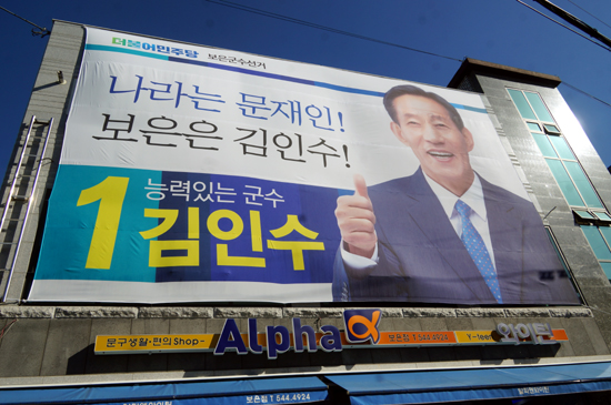 6.13Áö¹æ¼±°Å¸¦ ÇÑ ´Þµµ ä ³²±âÁö ¸øÇÑ »óȲ¿¡¼­ °¢ Á¤´ç º¸Àº±º¼ö Èĺ¸ ¼±°Å»ç¹«¼Ò °Ç¹° ¿Üº®¿¡´Â Ä¿´Ù¶õ Çö¼ö¸·À» ³»°É·Á À̹ø Áö¹æ¼±°Å°¡ ¹«¸£ÀͰí ÀÖÀ½À» º¸¿©ÁÖ°í ÀÖ´Ù.