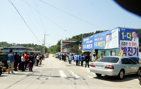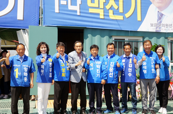 º¸Àº±º ±âÃÊÀÇ¿ø¼±°Å(´Ù¼±°Å±¸)¿¡ Ã⸶ÇÏ´Â ´õºÒ¾î¹ÎÁÖ´ç ¹ÚÁø±â È帰¡ 26ÀÏ ¿ÀÀü º¸Àº±º ¼öÇѸé»ç¹«¼Ò Àαٿ¡ Àӽ÷Π¸¶·ÃµÈ ÄÜÅ×ÀÌ³Ê ¹Ú½º¿¡¼­ ¼±°Å»ç¹«¼Ò °³¼Ò½ÄÀ» °¡Á³´Ù.