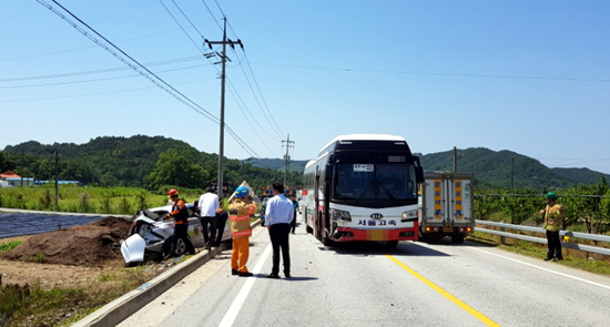 °æÂûÀº ¼Ó¸®»ê ¹æÇâ¿¡¼ ³ª¿À´ø Á÷Çà¹ö½º°¡ ¿ìȸÀü ÇÏ·Á´Â Åýø¦ ¹ÌÃÄ ¹ß°ßÇÏÁö ¸øÇØ »ç°í°¡ ¹ß»ý ÇÑ °ÍÀ¸·Î º¸°í Á¤È®ÇÑ »ç°í °æÀ§¸¦ Á¶»ç ÁßÀÌ´Ù.