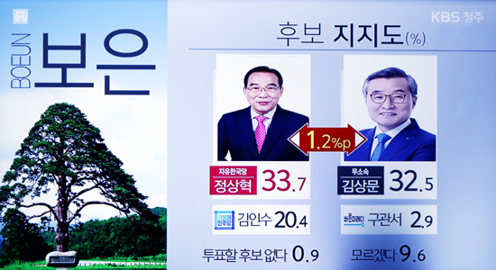 6.13 ¼±°Å D-5, KBSûÁÖ¹æ¼Û º¸Àº±º¼ö ¿©·ÐÁ¶»ç ¹ßÇ¥ Á¤»óÇõ Èĺ¸ 33.7%, ±è»ó¹® Èĺ¸ 32.5%, ±èÀμö Èĺ¸ 20.4% ¼ø,