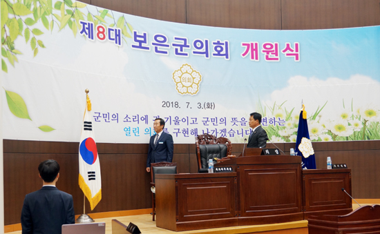 Á¦8´ë º¸Àº±ºÀÇȸ(ÀÇÀå ±èÀÀ¼±)°¡ 3ÀÏ °³¿ø½ÄÀ» °®°í 4³â°£ÀÇ ÀÇÁ¤È°µ¿¿¡ ³ª¼¹´Ù.