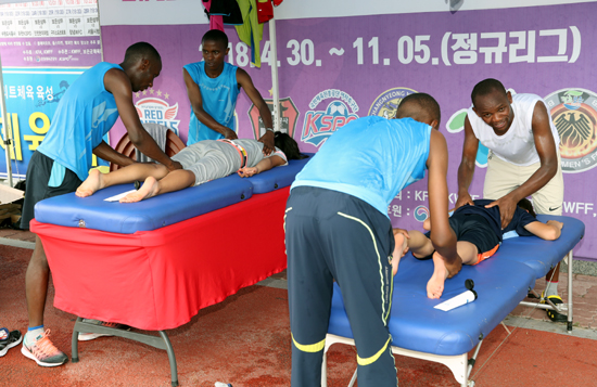 ¹ß ¸¶»çÁö ¹ÞÀº ¼±¼öµéÀº "»ý°¢Áö ¾ÊÀº ¹ß ¸¶»çÁö ¼ºñ½º¸¦ ¹Þ¾Æ ³Ê¹«µµ ½Ã¿øÇÑ ´À³¦"À̶ó¸ç "À̹ø ´ëȸ¿¡¼ ÁÁÀº ¼ºÀûÀ» ³ÂÀ¸¸é ÁÁ°Ú´Ù"°í ¸»Çß´Ù.