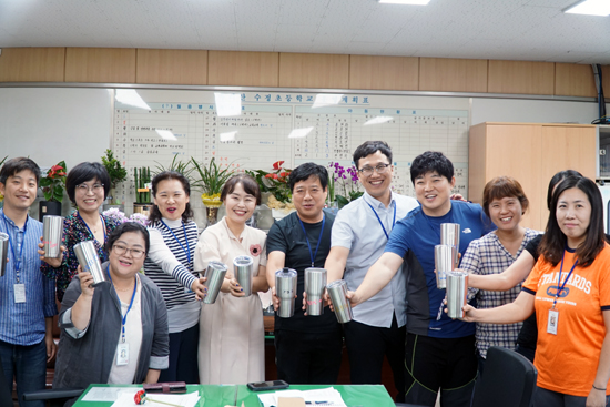 ¾ç±æ¼® ±³ÀåÀº "¿ì¸®°¡ ¹«½ÉÄÚ »ç¿ëÇÏ´Â ÀÏȸ¿ëǰÀÌ ¿ì¸® »ýȰ°ú ȯ°æ¿¡ ¾î¶² ¿µÇâÀ» ¹ÌÄ¡´ÂÁö ÁøÁöÇÏ°Ô °í¹ÎÇϰí, °Ç°°ú ȯ°æÀ» À§ÇØ ±³Á÷¿øµé ¸ðµÎ°¡ ÀÌ ¿îµ¿¿¡ µ¿ÂüÇϱâ·Î Çß´Ù"¸ç "¾ÕÀ¸·Îµµ Çб³ ±³À°È°µ¿¿¡ ÀÖ¾î »ýȰ¾²·¹±â¸¦ ÃÖ¼ÒÈ Çϰí ÀÏȸ¿ëǰÀ» ÁÙÀ̴µ¥ ¾ÕÀå¼°Ú´Ù"°í ¸»Çß´Ù.