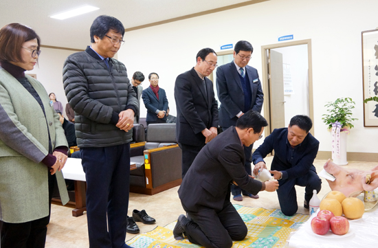 | | º¸Àº±ºÀÇȸ ¹ÚÁø±â ºÎÀÇÀåÀÌ °í»ç»ó¿¡ ÀýÀ» ÇÑÈÄ ¼úÀÜÀ» ¹Þ¾Æµé°í À½º¹À» Çϰí ÀÖ´Â ¸ð½À |