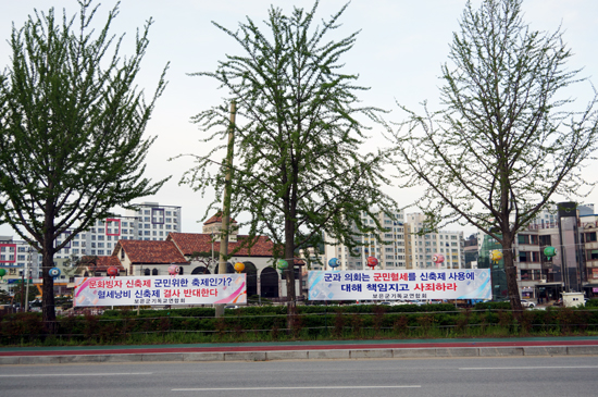 ÁÖ¿ä µµ·Îº¯¿¡ ³»°É¸° Çö¼ö¸·¿¡´Â '¹®È¸¦ ºùÀÚÇÑ ½ÅÃàÁ¦ °á»ç¹Ý´ë', '±º¹ÎÇ÷¼¼ 4¾ï5õ ±Í½ÅÃàÁ¦ À¢¸»Àΰ¡', '¼Ó¸®»ê ½ÅÃàÁ¦ Áï°¢ Áß´ÜÇ϶ó', '±º°ú ÀÇȸ´Â ±º¹ÎÇ÷¼¼¸¦ ½ÅÃàÁ¦ »ç¿ë¿¡ ´ëÇØ Ã¥ÀÓÁö°í »çÁËÇ϶ó', '±º¼ö´Â ½ÅÃàÁ¦ ¸ðµç Çà»ç¸¦ Áï°¢ Áß´ÜÇ϶ó'´Â µîÀÇ ¹®±¸°¡ ÀûÇô ÀÖ´Ù.