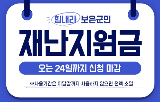 º¸Àº±º, Á¤ºÎ ±ä±ÞÀç³Áö¿ø±Ý ½Åû ¿À´Â 24ÀÏ ¸¶°¨ Áö¿ø±Ý Áö±Þ 98%¿Ï·á, ÃÑ 96¾ï Áö±Þ,