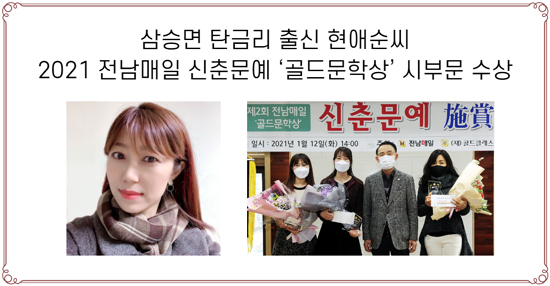 »ï½Â¸é ź±Ý¸® Ãâ½Å Çö¾Ö¼ø¾¾ '°ñµå¹®Çлó' ¼ö»ó 2021 Àü³²¸ÅÀÏ ½ÅÃá¹®¿¹ '°ñµå¹®Çлó' ½ÃºÎ¹®