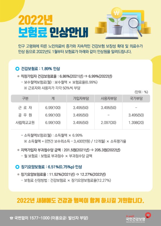 ÀÌ¿¡ µû¶ó 2022³â Á÷Àå°¡ÀÔÀÚ´Â ¿ù Æò±Õ °Ç°º¸Çè·á¸¦ ¾à 2,475¿ø ´õ ºÎ´ãÇÏ°Ô µÇ°í, Áö¿ª°¡ÀÔÀÚ´Â ¾à 1,938¿øÀ» Ãß°¡ ºÎ´ãÇÏ°Ô µÈ´Ù.