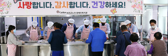 À̳¯ ÀÇ¿øµéÀº ³ëÀÎÀå¾ÖÀκ¹Áö°üÀ» ãÀº ¾î¸£½Å°ú Àå¾ÖÀÎ 300¿©¸í¿¡°Ô Á¤¼º½º·¹ ÁغñÇÑ À½½ÄÀ» Á÷Á¢ ¹è½ÄÇÏ¸ç ¼ÒÅëÀÇ ½Ã°£À» °¡Á³´Ù.