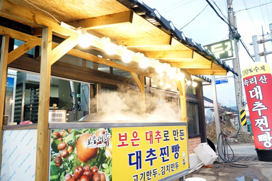 ¿Ã °¡À» ¼Ó¸®»ê °¡´Â ±æ¸ñ(¼Ó¸®»ê¸é»ç¹«¼Ò ¾Õ)¿¡ Âð»§Áý Çϳª°¡ ¹®À» ¿¾ú´Ù. º¸Àº´ëÃ߸¦ ³Ö¾î ¸¸µç ´ëÃßÂð»§ÀÌ ¼Ó¸®»êÀ» ã´Â °ü±¤°´µé¿¡°Ô º¸Àº´ëÃßÀÇ ¿ì¼öÇÑ ¸ÀÀ» ¼±º¸À̰í ÀÖ´Â °Í,